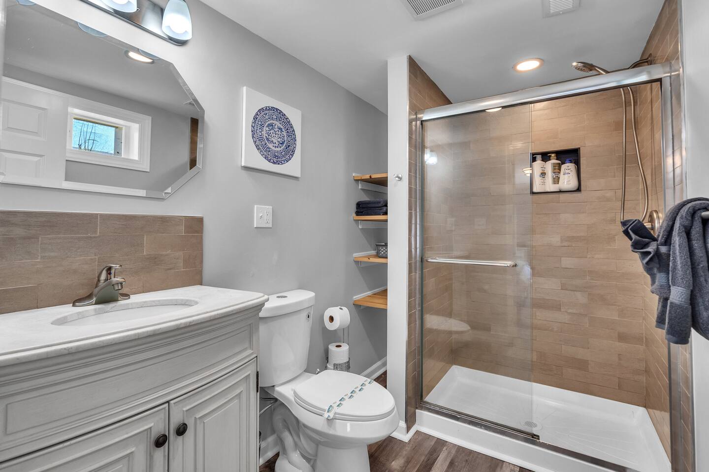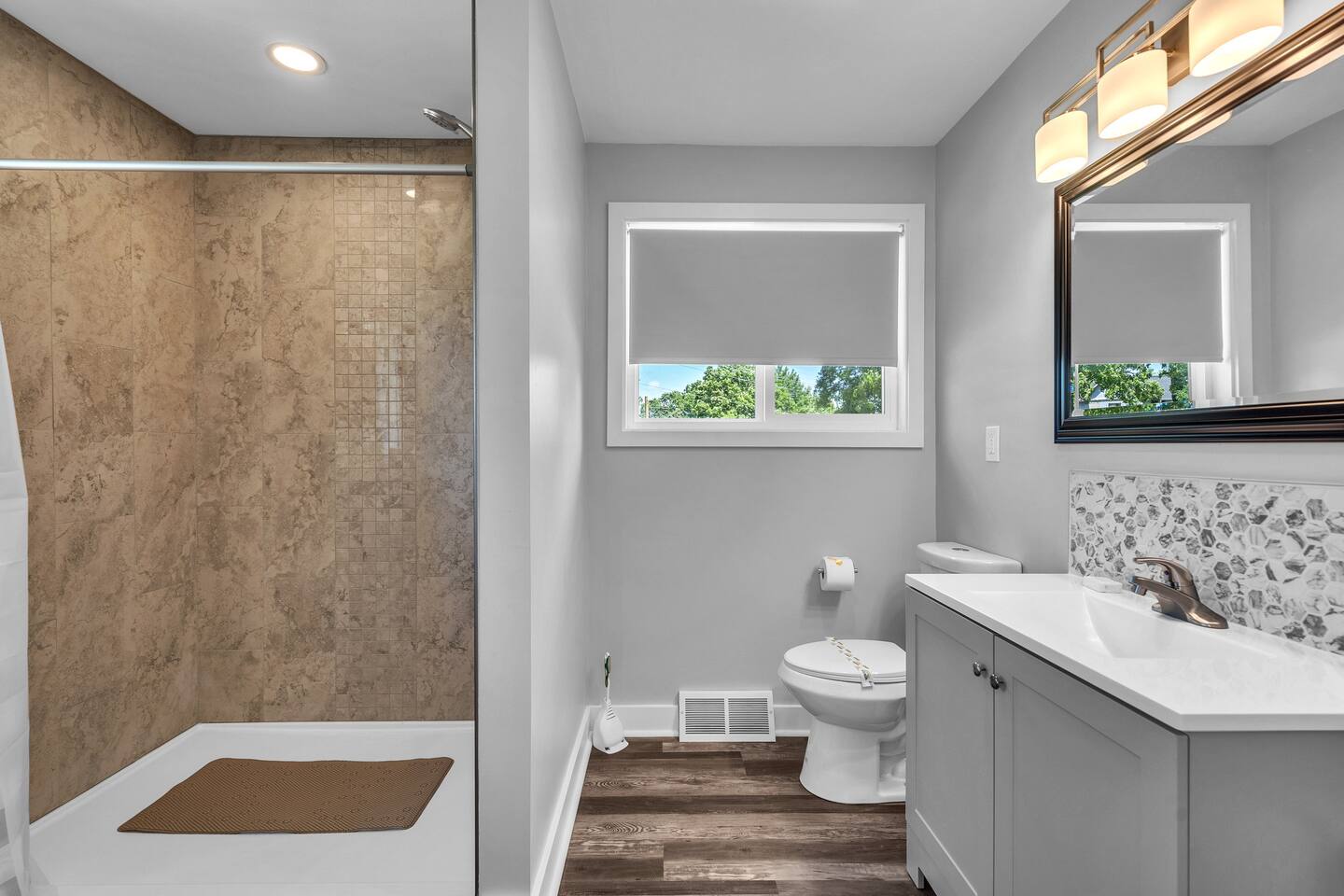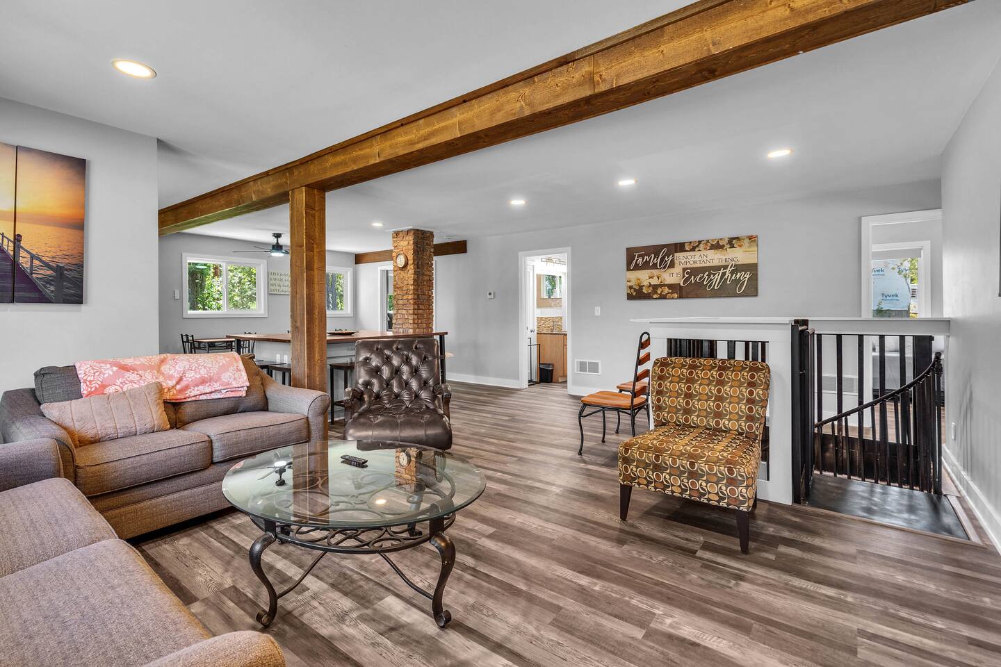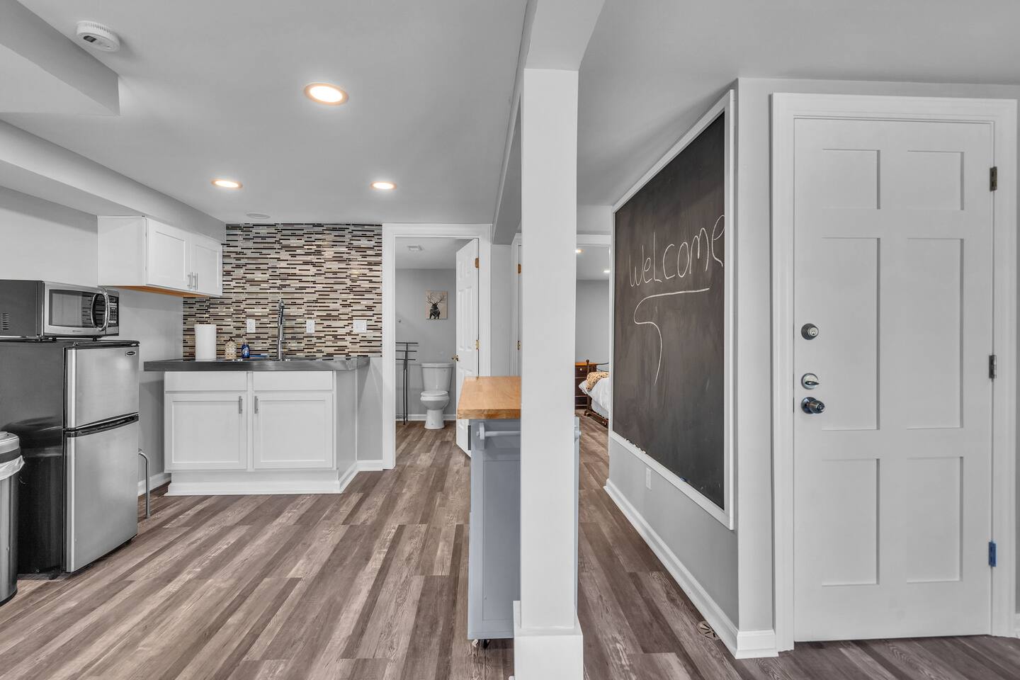 Room for Everyone – Sleeps 14 Comfortably The "Big Chill offers" 6 bedrooms and 4 full bathrooms spread across two spacious levels — perfect for large groups, multi-family stays, or special gatherings. Main Level: -Queen master bedroom with access to full bath -Queen bedroom -Twin trundle with pull-out -2 full bathrooms Upper Level: -King master suite with private bath -Bedroom 2: Queen + twin trundle with pull-out -Bedroom 3: Twin trundle with pull-out -2 full bathrooms Bonus: A cozy 3-season room with seating for 6 — ideal for morning coffee, game nights, or wine chats. Indoor Comfort Meets Outdoor Living Chef’s kitchen with hardwood countertops + oversized island Generous seating indoors & out for group meals 2 Weber gas grills + brand-new wood-fired pizza oven Spacious 15x30' outdoor patio Solo Stove fire pit inside a grain-bin gazebo + an open-air fire pit Lower-level kitchenette with fridge, freezer & microwave Fun & Unique Amenities You Won’t Find Anywhere Else Private 5-hole mini golf course -Cornhole, frisbee golf net, volleyball setup (on request) -Grain-bin gazebo with 55” Smart TV & stereo -Indoors: 70” + 65” Smart TVs, board games, books & cozy lounges -Adventure-Ready for All Ages -6 bikes with helmets (more on request) -Kayaks with paddles & life vests (reserve in advance) -4 luxury lake floats -Fishing gear provided — fish off the public shoreline just 2 blocks away -Coolers + wagon for your lake day convenience -Boat rental/charter options nearby — including pickup from Hillside Road public beach (just a short walk away) **If you choose to use any of the outdoor amenities or activities the host and co-hosts are not held liable.**